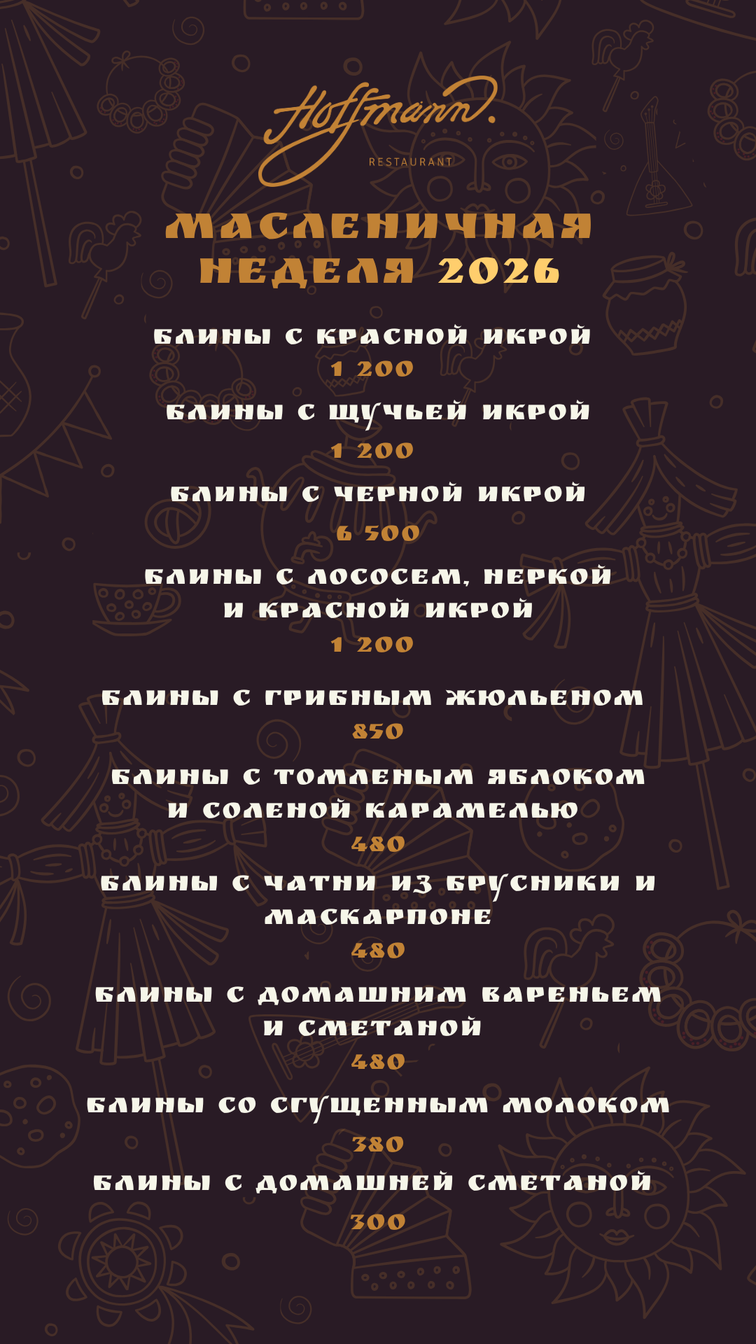 С 16 по 22 февраля ресторан Hoffmann приглашает разделить главное гастрономическое торжество зимы. Мы переосмыслили традиции в авторском прочтении шеф-повара, сохранив тепло и дух праздника.