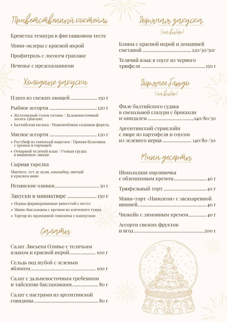 Год завершается — праздник начинается! Мы создали идеальную формулу главных вечеров декабря для вашей компании. Продумано каждое мгновение — от первого глотка игристого до самого зажигательного танца.