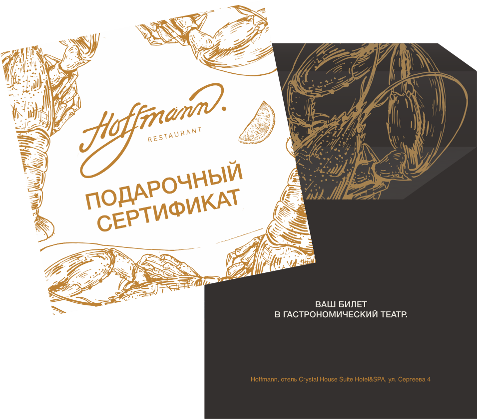 Сертификат можно использовать в ресторане Hoffmann, в Баре Кристалл или на террасе Hoffmann.