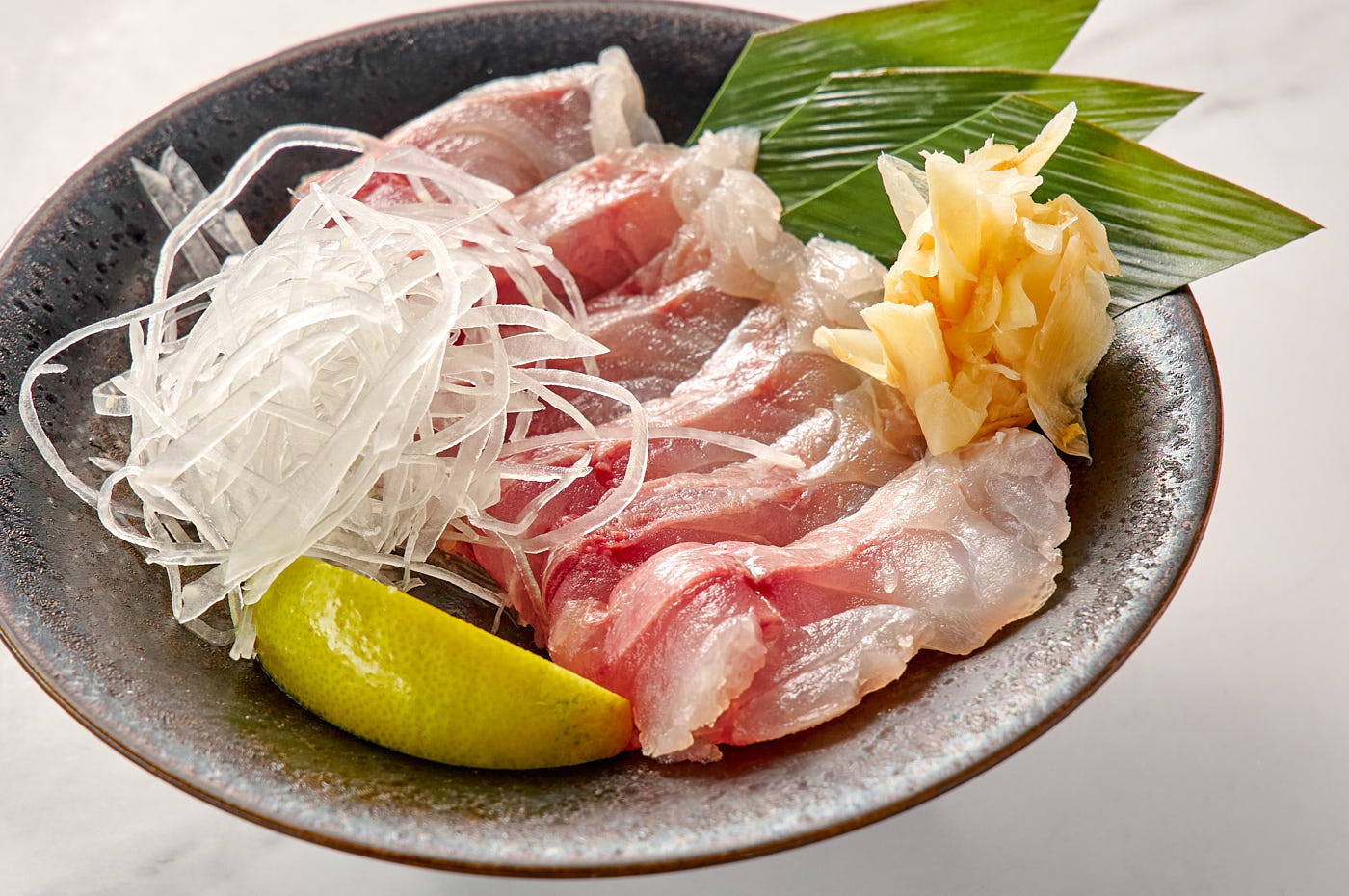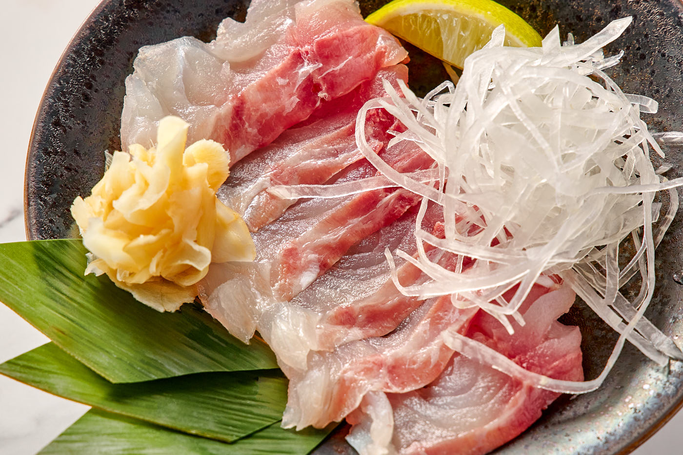 Попробуйте сашими из рыбы пагр — которую ценят за чистое, упругое мясо и нежный, слегка сладковатый вкус. Мы нарезаем филе тонкими, тающими во рту ломтиками, чтобы сохранить его первозданный вкус и текстуру.