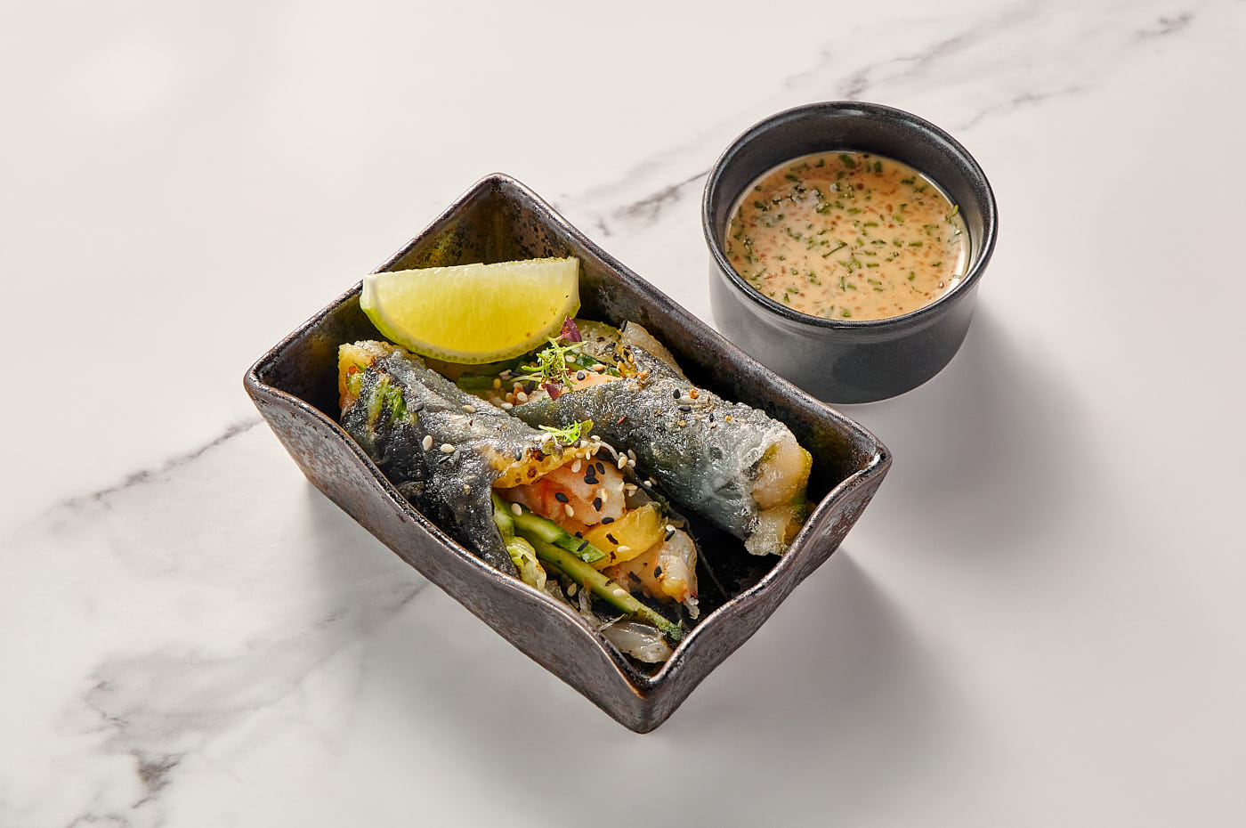 Сочная креветка в тандеме с острыми ферментированными ананасами и хрустящим огурцом. Идеальный баланс остроты и сладости в легком рисовом роле. Подается с фирменным соусом спринг и соком лайма для идеальной гармонии вкуса.