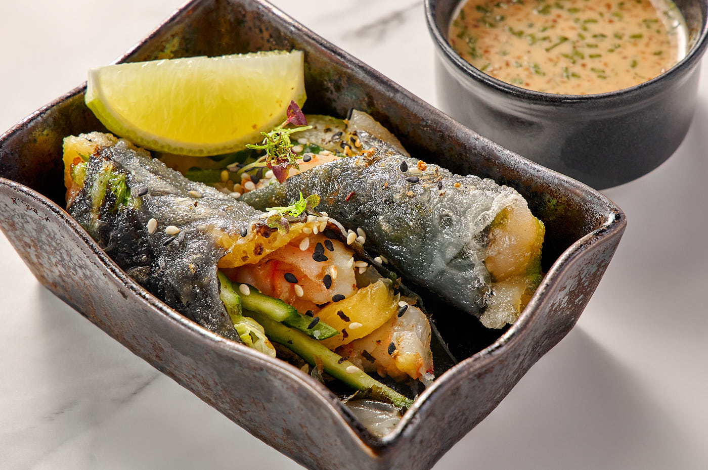 A juicy shrimp paired with spicy fermented pineapple and crisp cucumber. The perfect balance of spiciness and sweetness in a light rice wrap. Served with a signature spring sauce and lime juice for perfect flavor harmony.